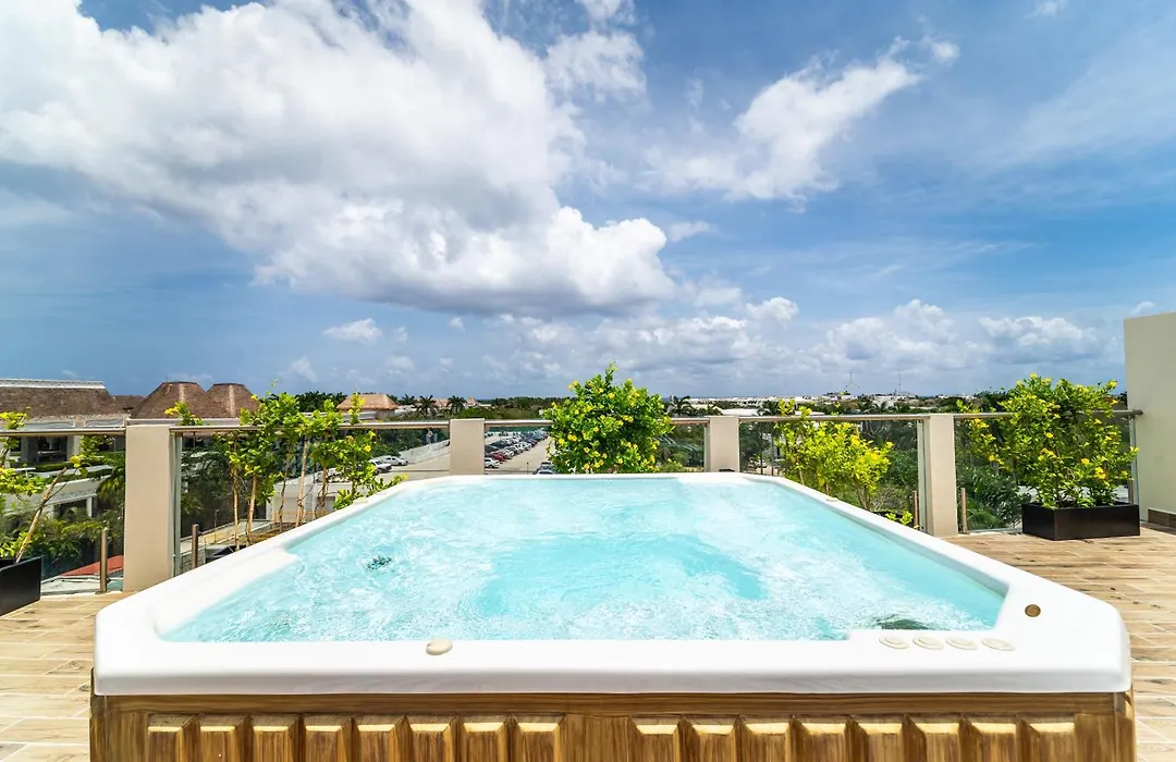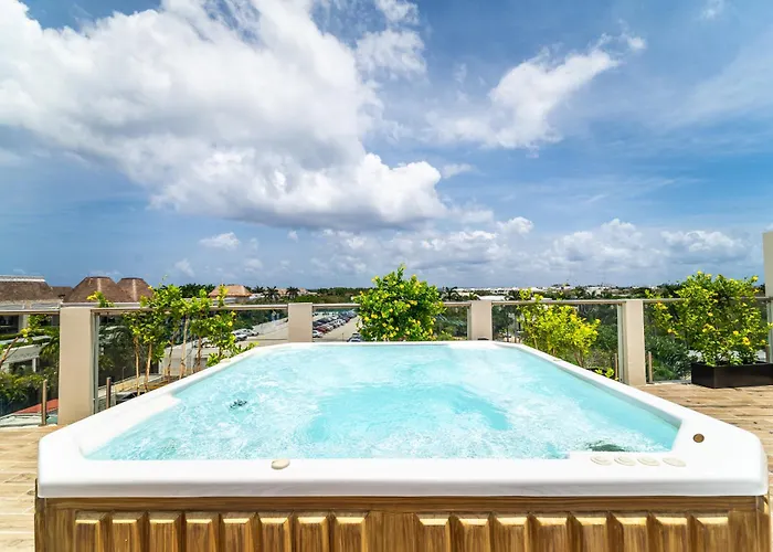 Die 3-Zimmer- Villa Penthouse With Jungle View Terrace Gym Pool Hottub Playa del Carmen liegt nur 5 Fußminuten von der Playa entfernt und bietet ihren Gästen einen Jacuzzi zur Entspannung. Gelegen rund 4 km vom Martina Beach Club entfernt, bietet die Villa in Playa del Carmen WLAN und einen privaten Autoparkplatz.